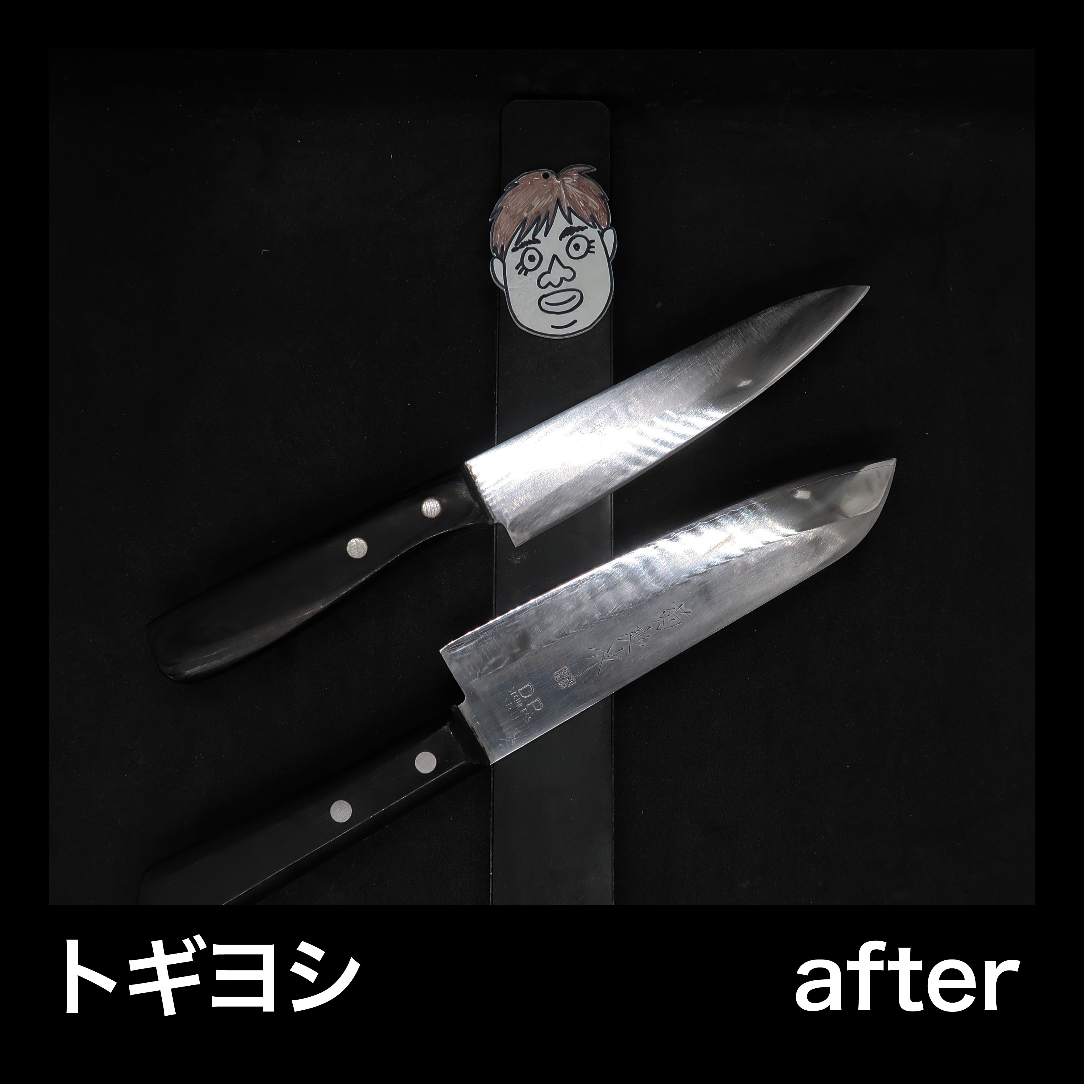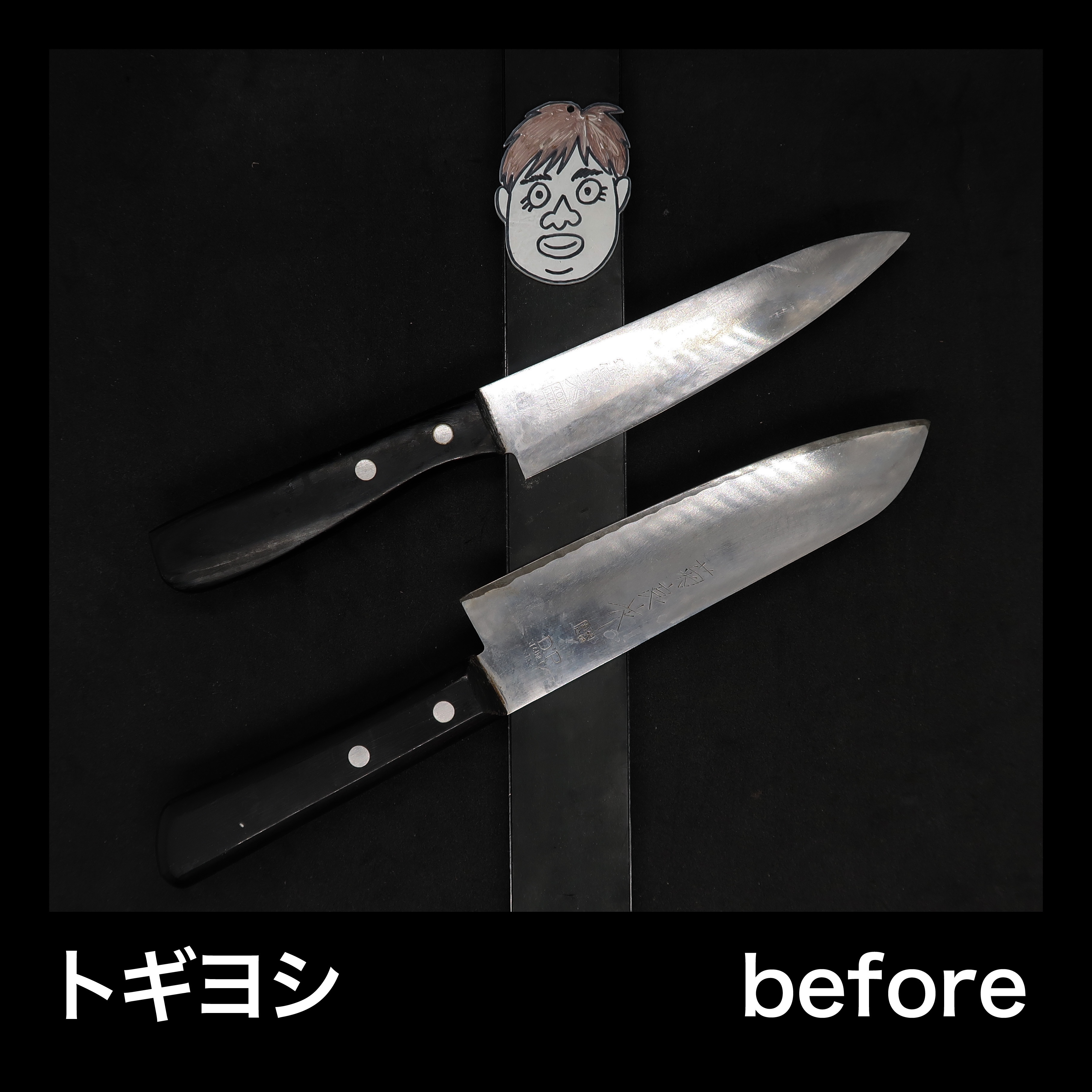 家庭を笑顔にする魔法のような包丁を研ぐトギヨシの木元です。本日はこの2本の包丁を研ぎ澄ましました。先日に引き続きトギヨシいちばんのお得意様の包丁。永く大切に使われてる包丁をメンテナンスできて嬉しい限りです。菊良の三徳は刃身の厚みが気になったので切刃の幅を広げています。だいぶ切り込みが楽になると思います。宮文の小ぶりな牛刀は特に気になるところは無く順調に仕上がりました。今日もバッチリ仕上がってハッピー‼️
