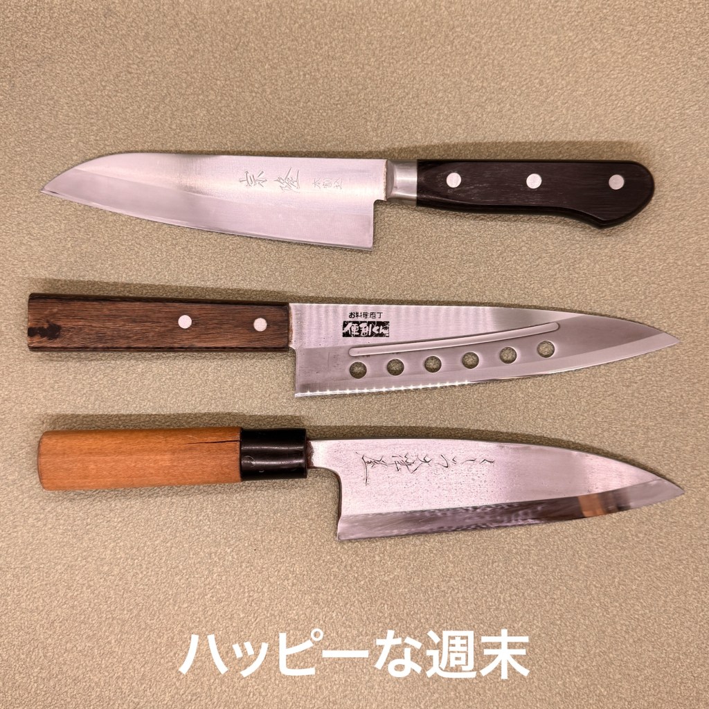 この9本を研ぎ上げました。今日はたくさん研いだので何が何だか覚えていません。笑笑。それだけ集中して研ぎました。今回包丁達は大きな傷みはほとんど無くどれも順調に仕上がりました。