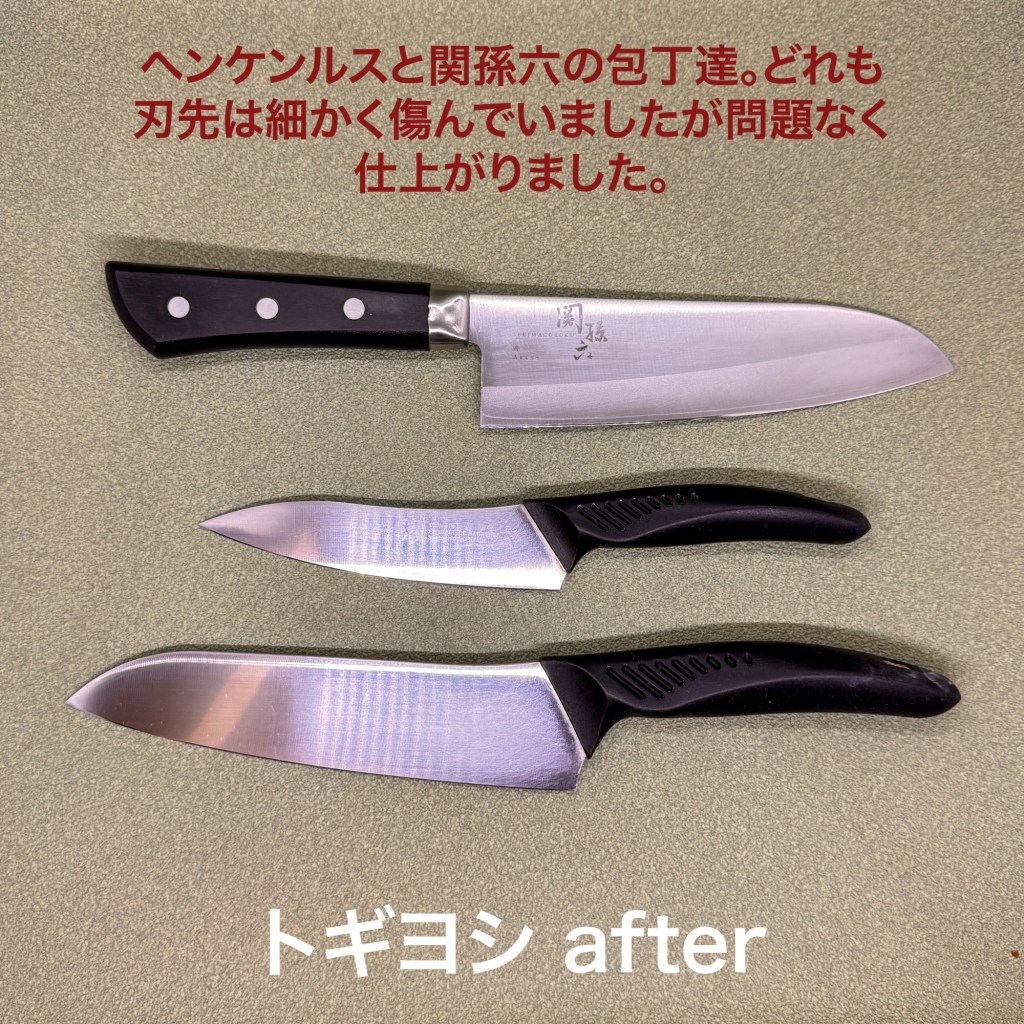 関孫六の三徳包丁とヘンケルスの包丁は研ぎは手付かずでしたのでスムーズに研ぎ上がりました。