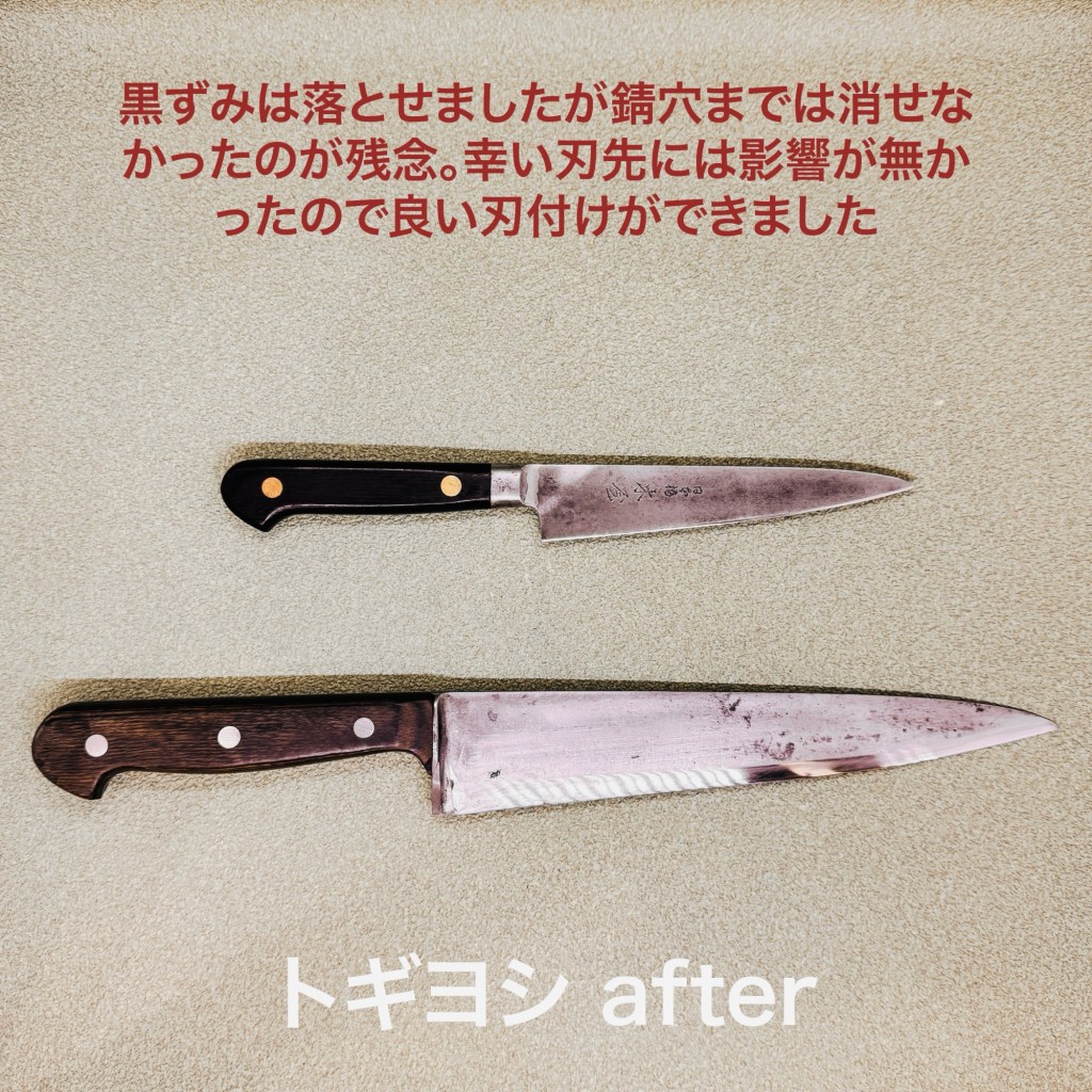 関孫六の小出刃、結構錆びていましたが刃先には影響が無く綺麗に仕上がりました。