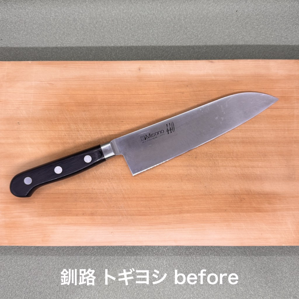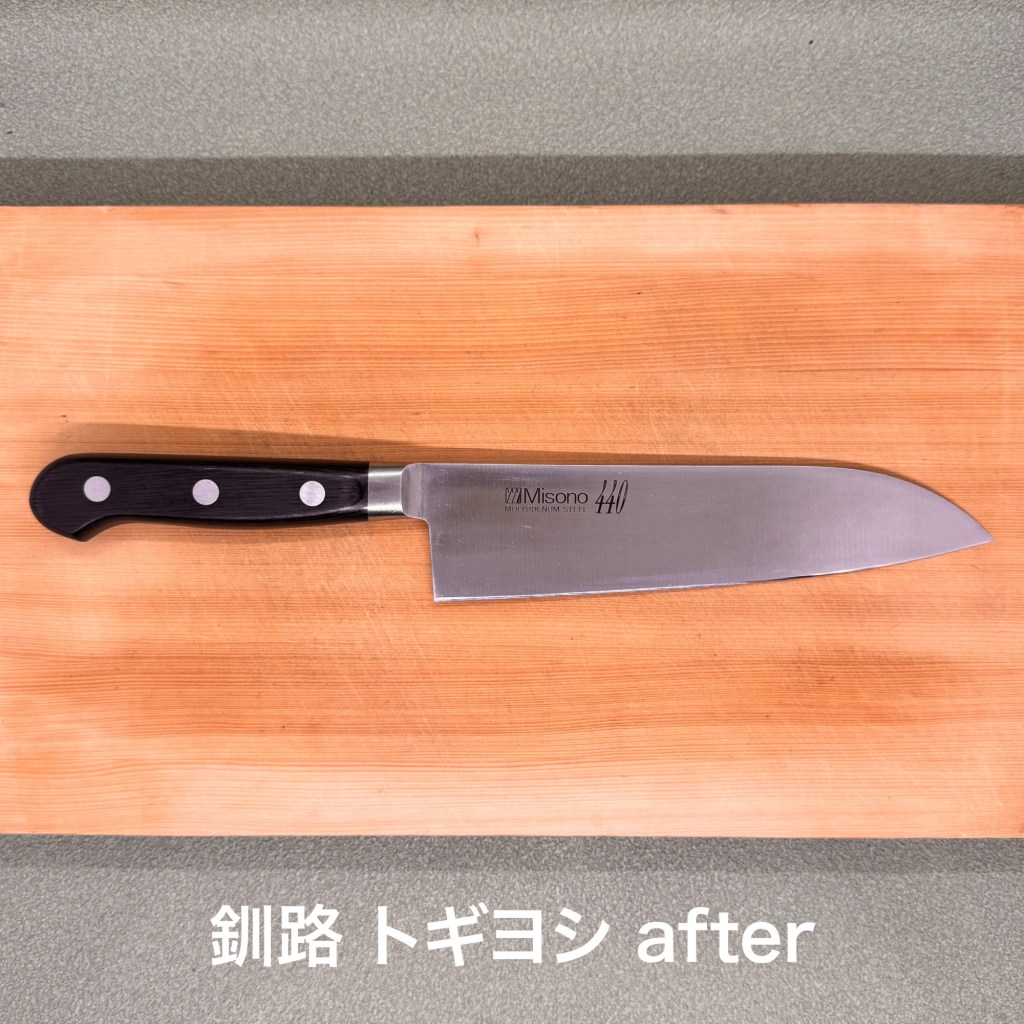 ミソノ440の三徳包丁。刃先の傷みは部分的でしたのでスムーズに仕上がりました。