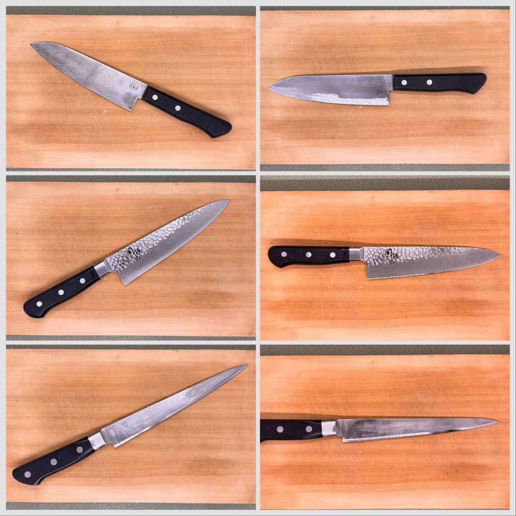 細い包丁は筋引き包丁。前にも研いでリピートして下さりありがとうございます。角度20度でしっかり仕上げました。