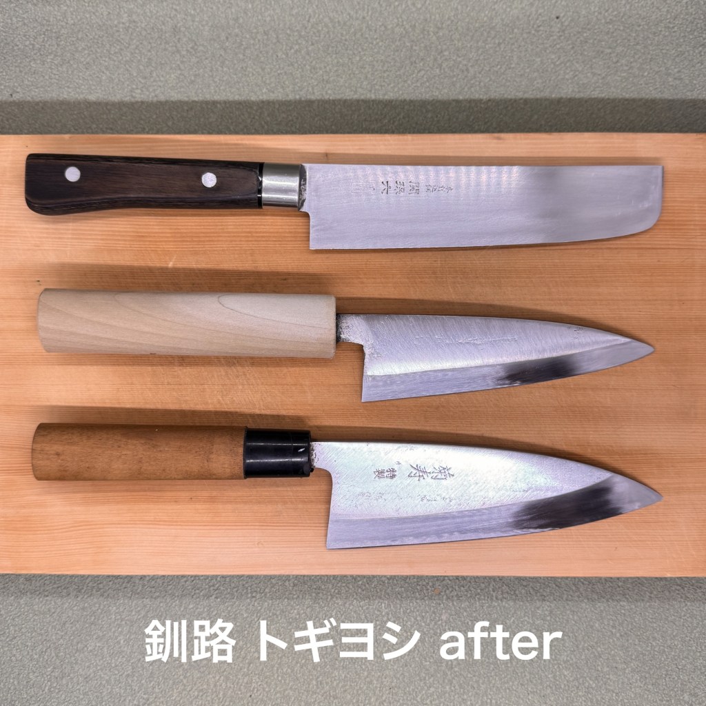昨日と今日で9本の研ぎ依頼。ありがとうございます。出刃と柳刃と両出刃が各一本あったので結構ハードな研ぎとなりました。他に2本残っているので明日研ぎます。